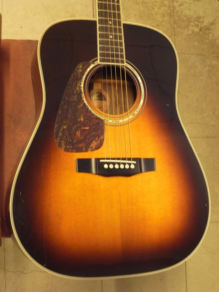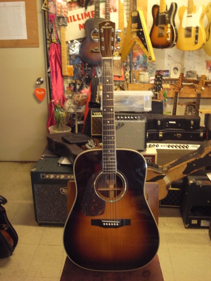 日本製の左用ドレッドノートモデルで材、作りともにしっかりしており、安定感のある演奏性です。