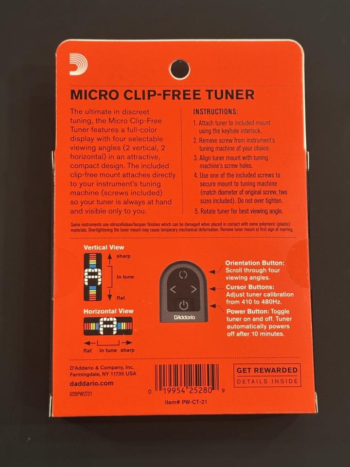 「目立たない」チューナー、D'Addario NS Micro Clip-Free チューナーです。