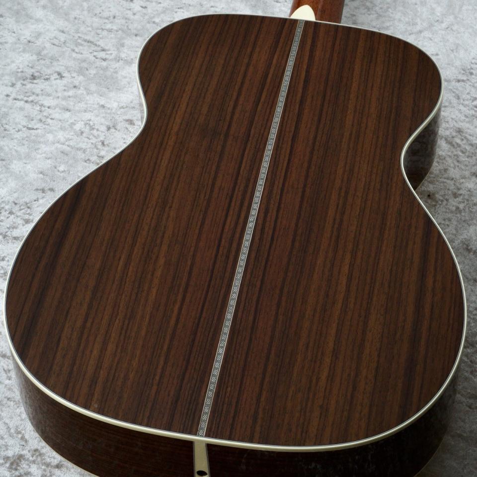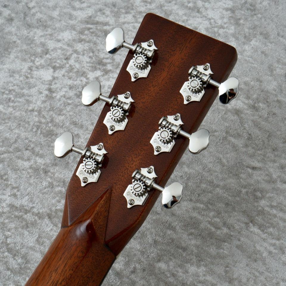 切り貼り無く一塊のマホガニーブロックから削りだされたネックは現行の000-28のネックシェイプに比べ中央部に厚みが設けられ、このネックにより000サイズながらしっかりと中低音が強く響きます。