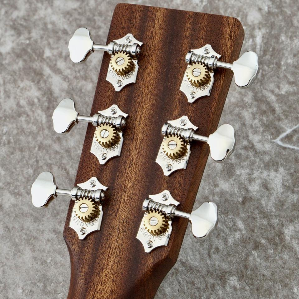 単板スプルース トップ、単板サペリ バック&サイドを採用したこのギターは、スプルーストップのダイナミックレンジと鮮明なアーティキュレーションと、サペリの温かみと力強い中音域を融合させています。