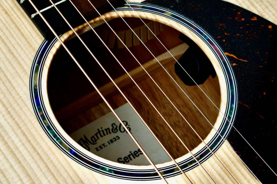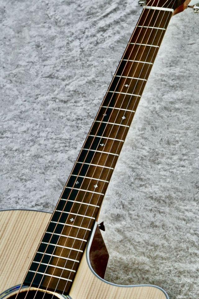 単板スプルーストップは、鮮明なアーティキュレーションとヘッドルームを提供し、コア材のファインベニアバック&サイドは、きらめく高音、温かみのある中音、そしてスムーズなサスティンをもたらします。スキャロップドXブレーシングは、レスポンスと明瞭度を高め、フィンガーピッキングでもストロークでも、トップの息づかいと共鳴を促します。カッタウェイは高いフレットへのアクセスを容易にし、現代の演奏スタイルにも自然にマッチします。