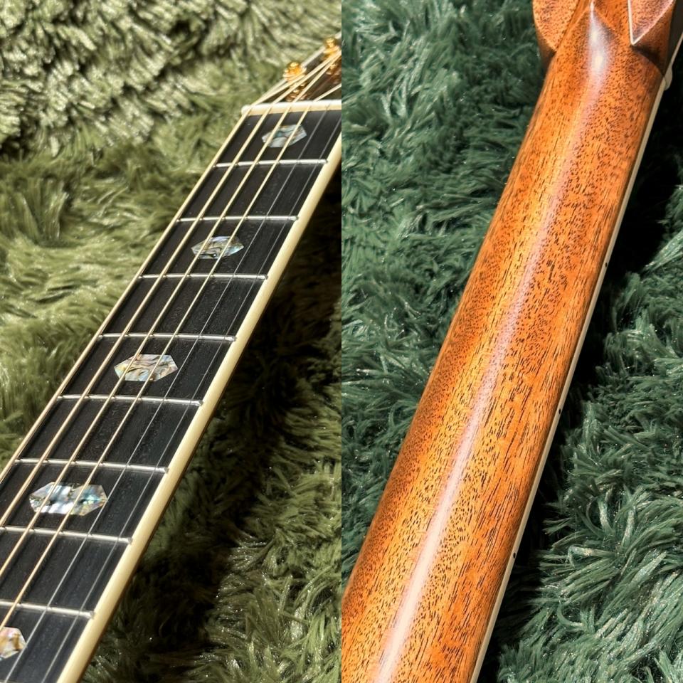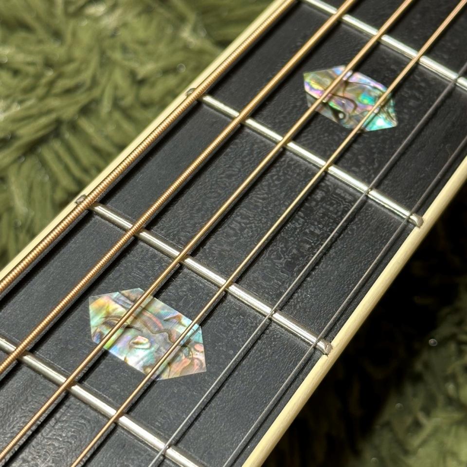 さらにロゴ、指板、ボディトップに施されたアバロンの装飾は見た目にも美しく、40番台ならではの意匠をご堪能いただけます。