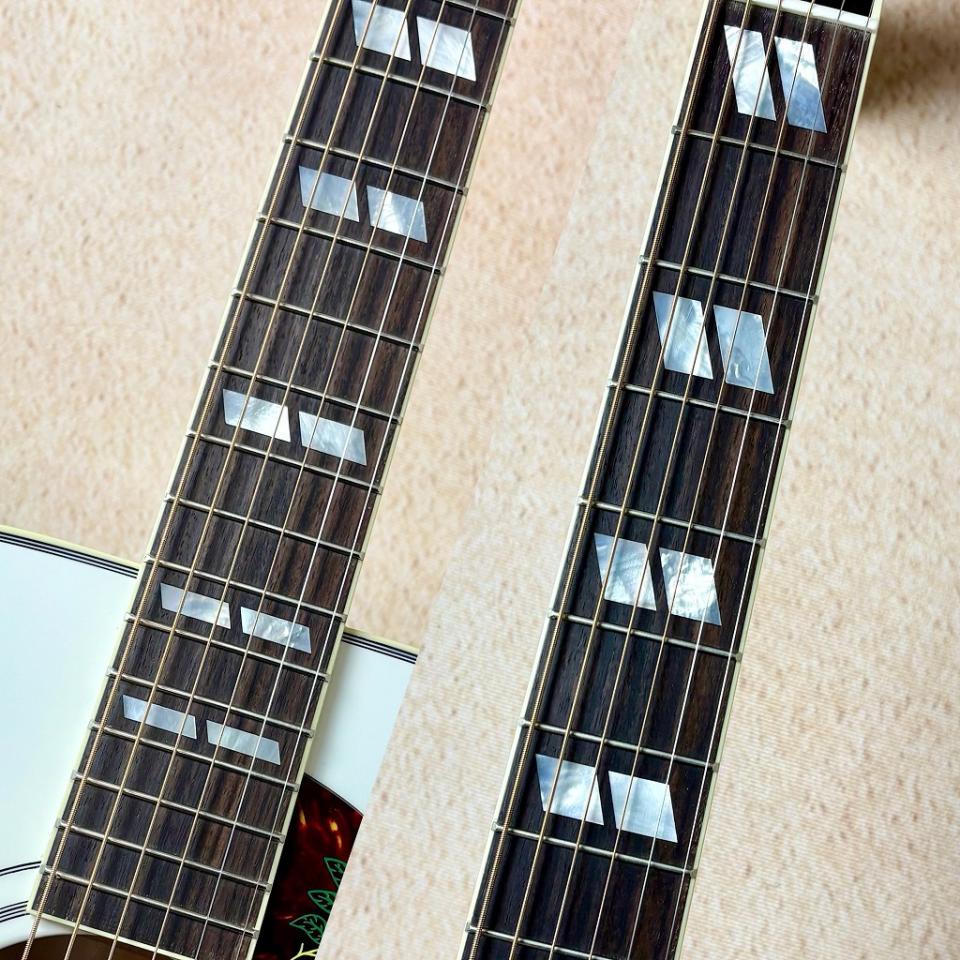 メイプル材特有の甘みやストローク時の重厚感は、同じメイプルボディのJ-200とはまた違った魅力があります。