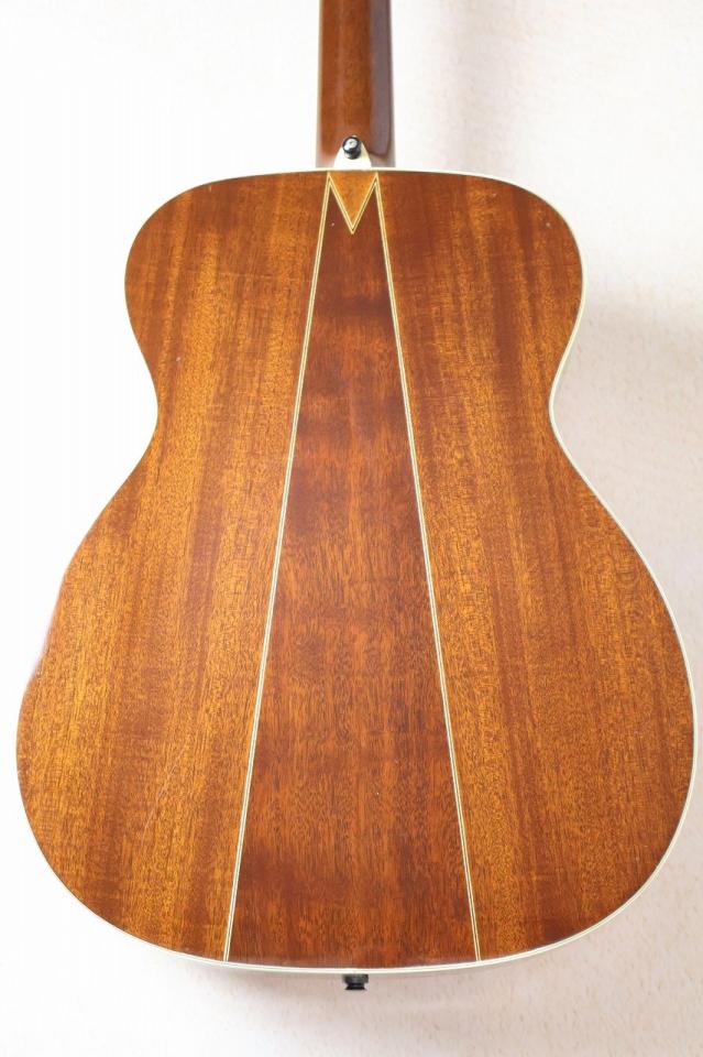 バックとサイドはマホガニー単板で、温かみのある中域と芯の通った輪郭を両立しています。