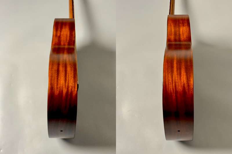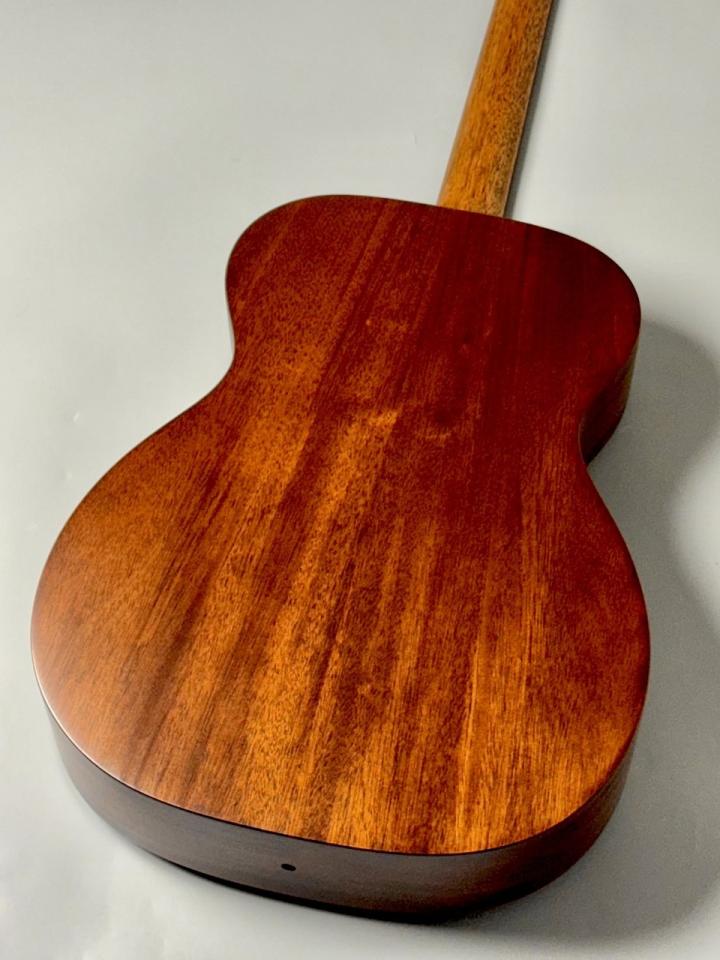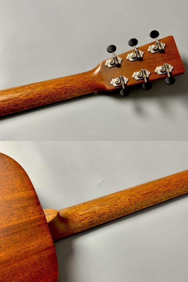 本モデルもトップ、バック、サイドすべてにマホガニー単板を採用したオール単板構造となっており、ダークマホガニーのサテンフィニッシュが落ち着いたヴィンテージ感を演出します。
