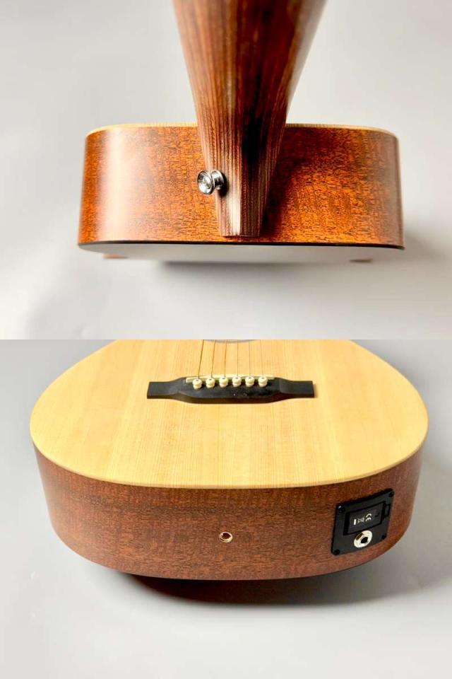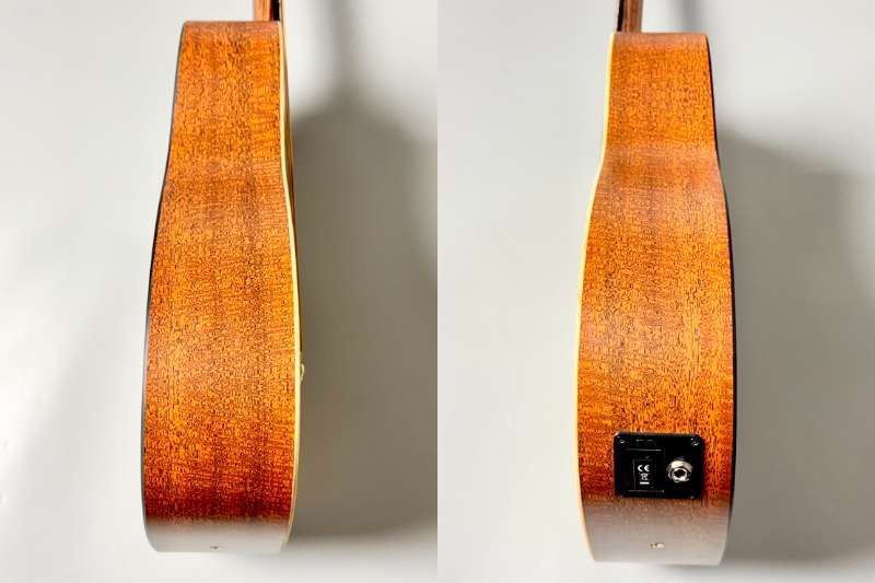 トップ材には シトカ・スプルース単板 を採用し、豊かな倍音と抜けの良い高音域、自然なレスポンスを実現。耐候性の高い ハイプレッシャー・ラミネイト(HPL) のバック/サイドは湿度・温度変化に強く、旅行やライブ、屋外での演奏にも安心です。