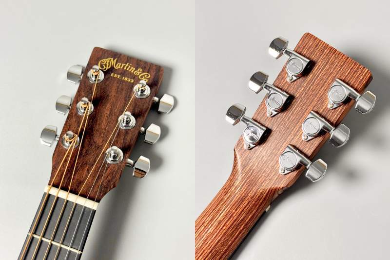 Richlite製フィンガーボード&ブリッジ、ホワイトCorianナット、補正入りTusqサドルなど、随所にMartinの定評あるパーツを採用。