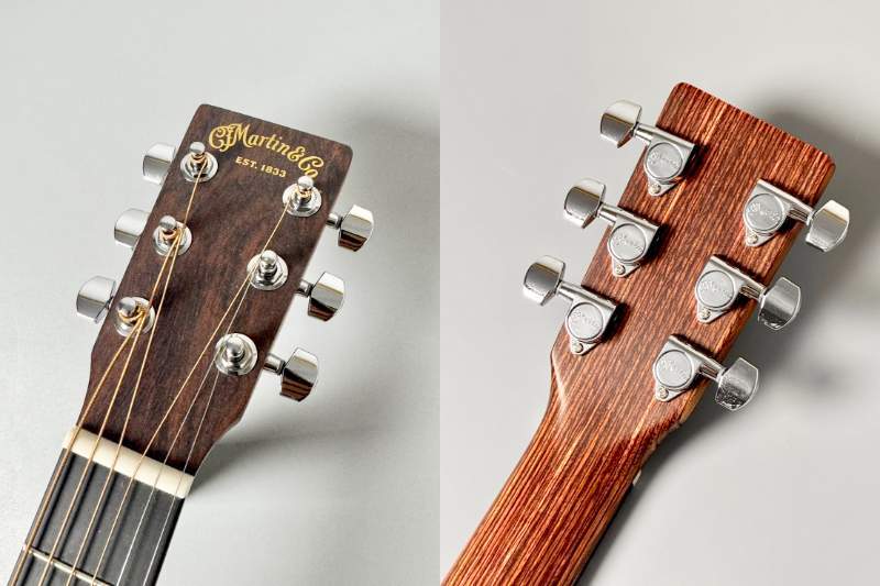 Richlite製フィンガーボード&ブリッジ、ホワイトCorianナット、補正入りTusqサドルなど、随所にMartinの定評あるパーツを採用。