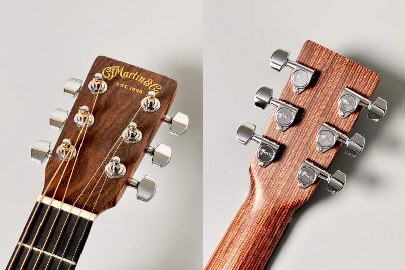 Richlite製フィンガーボード&ブリッジ、ホワイトCorianナット、補正入りTusqサドルなど、随所にMartinの定評あるパーツを採用。
