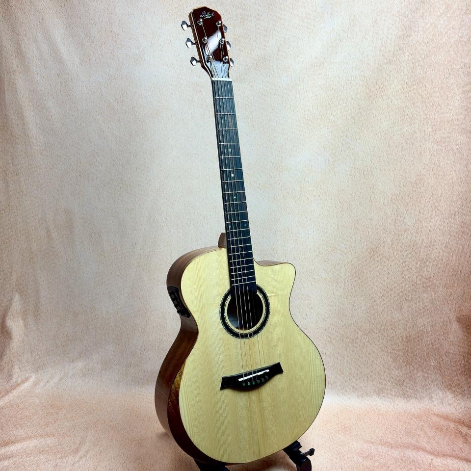 クロサワ楽器店オリジナルブランド「STAFFORD」より登場したModern Seriesは、カッタウェイボディを採用したエレアコ仕様のモデルです。ハイポジションまで快適に演奏できる設計に加え、ベベルド・アームレストとオリジナル・ピックアップシステムを標準装備し、生鳴りの魅力を保ちながらクリアで存在感のあるラインサウンドを実現。JRサイズの小ぶりなボディは軽く抱えやすく、お子様や女性にもおすすめで、ステージから自宅演奏まで幅広く活躍する、演奏性・音質・デザインを現代的に磨き上げたシリーズです。