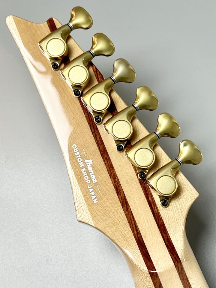極め付けは、ジャンボサイズのステンレス・フレット。メンテナンス性に優れるだけでなく、クリアでアタックの速い出音を実現し、コード弾きでもノートの分離が抜群です。さらに、Ibanez Custom Shopの職人技が光るフレット・エッジ・トリートメントが施されており、フレットサイドの角を完全に丸め、指が引っかかる抵抗を極限まで低減。一段上の滑らかな運指を実現しています。