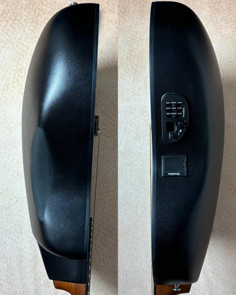 Ovation純正のOP-4CTプリアンプを搭載し、ボリューム/3バンドEQによる直感的な音作りが可能。視認性の高いチューナーを内蔵しており、ステージやリハーサルでも素早くチューニングできます。