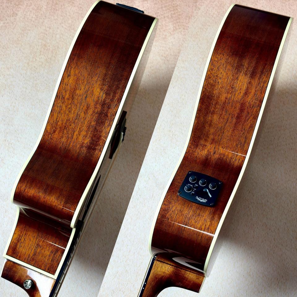 当モデルでは、表面がスプルース、側面&裏面がマホガニーの木材で構成されており、豊かなハーモニーを奏でる事が可能になっております。ピックなどで弾くと力強いサウンドも演奏可能なため、あらゆるジャンルで使用可能な一本となっております!