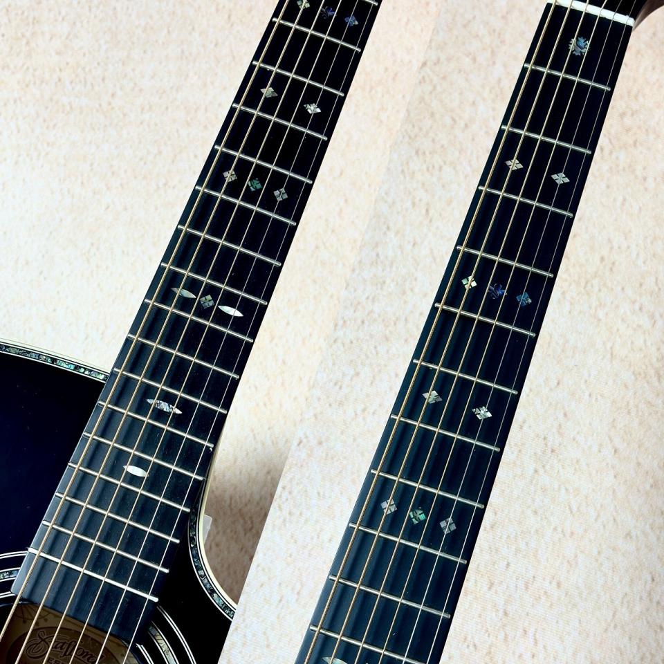 当モデルでは、表面がスプルース、側面&裏面がマホガニーの木材で構成されており、豊かなハーモニーを奏でる事が可能になっております。ピックなどで弾くと力強いサウンドも演奏可能なため、あらゆるジャンルで使用可能な一本となっております!