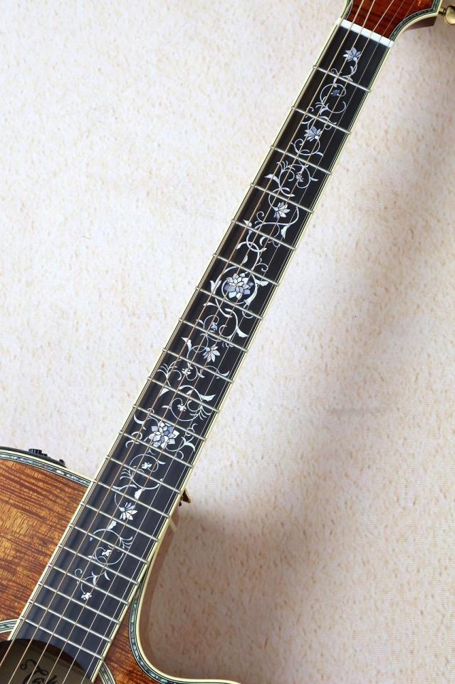 JAPANESEオールコアの美しい杢目に、グラス・フラワーの美麗なポジションマークが魅力のギター!