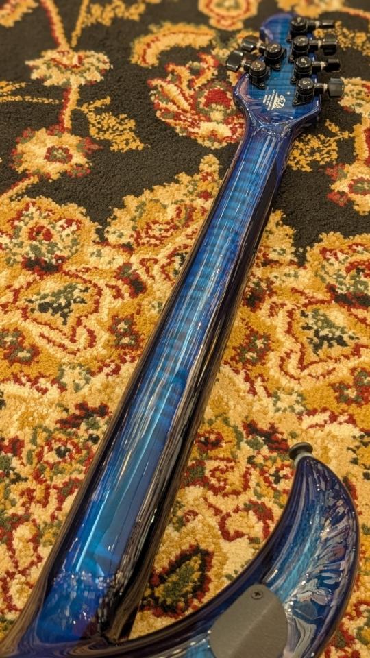 スルーネック構造: マホガニーとフレイム・メイプルの組み合わせによる3ピースのスルーネックが、圧倒的なサスティンと安定性を実現します。ネックからボディまでが一体となったデザインは、ハイポジションでの演奏性を高め、芸術的なルックスを完成させています。