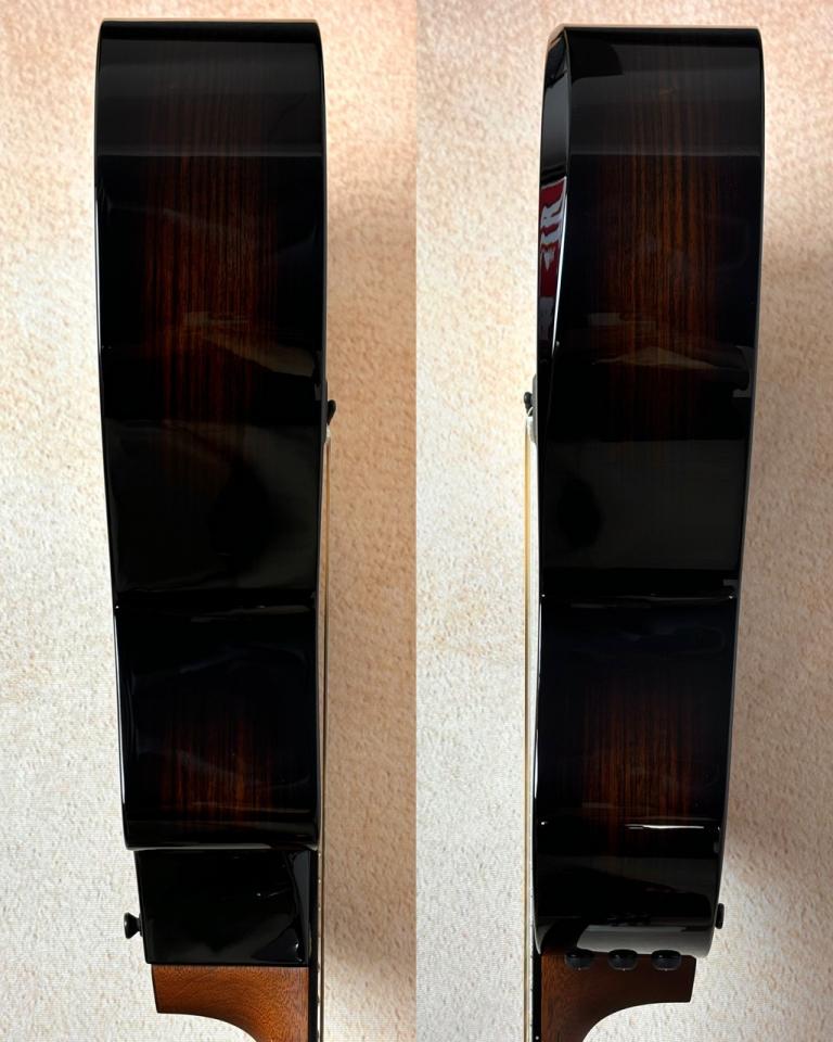Builder's Editionならではの特徴として、ボディエッジのコンター加工やネックヒールのスムーズな形状は、長時間の演奏でも手首や腕の負担を軽減。滑らかな指板と快適なネックシェイプが組み合わさることで、プロプレイヤーはもちろん、上級者でも思い通りの演奏表現を可能にします。さらに、V-Classブレーシングが生み出す倍音の広がりは、ソロ演奏からバンド演奏まで幅広いシーンで存在感を放ちます。