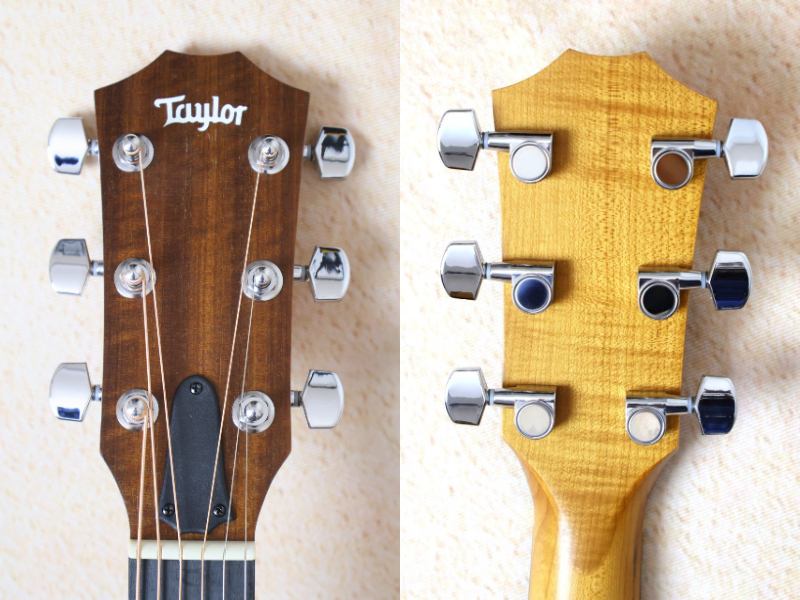 Taylor独自のES-Bピックアップを搭載し、アンプやPA接続時も生音のニュアンスを活かしたクリアで立体的なサウンドを出力可能。ライブや録音にも対応します。