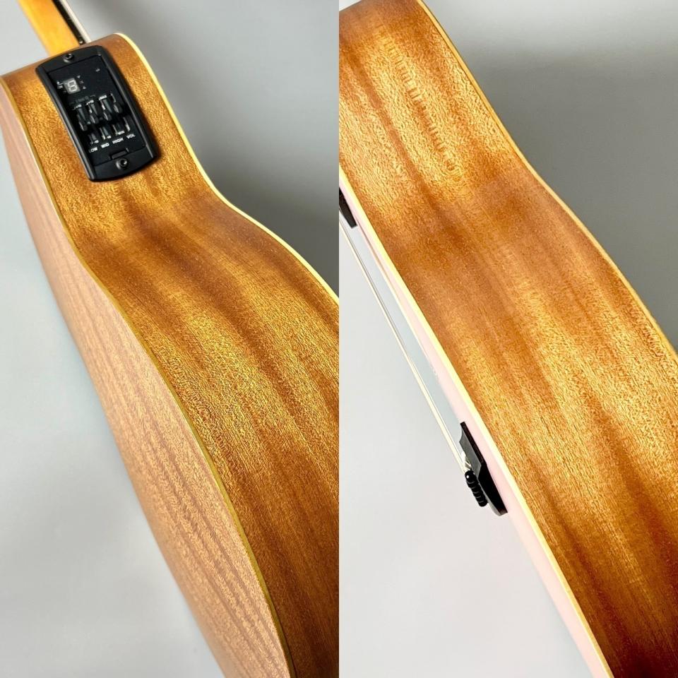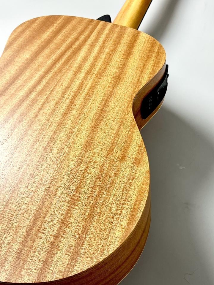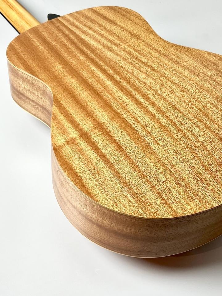 トップ材にはスプルース単板を採用し、サイズ以上にしっかりとした音量と明瞭なトーンを実現。低音はタイトで輪郭があり、中高音は抜けが良く、ストロークでもフィンガースタイルでもバランスの取れたサウンドを楽しめます。短めのスケールと握りやすいネック設計により、手の小さい方や初心者でも無理なく演奏できるのも大きな魅力です。