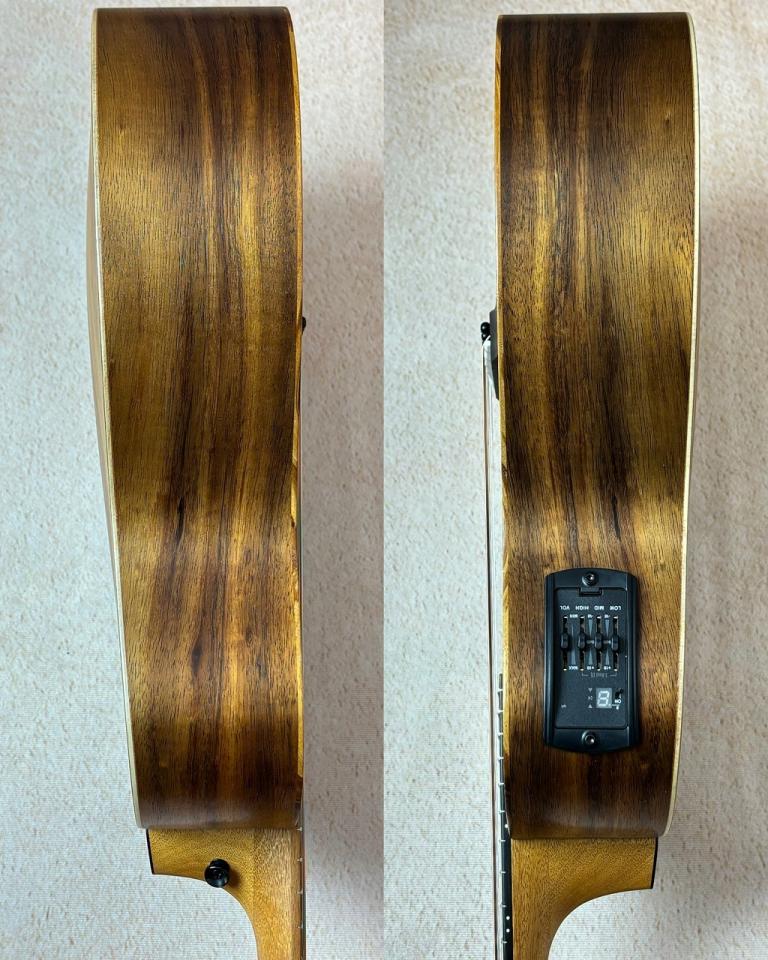 美しい木目と光沢が特徴で、温かみのある豊かな音色を生み出します。経年変化で色味や艶が増すため、長く愛用できます。
