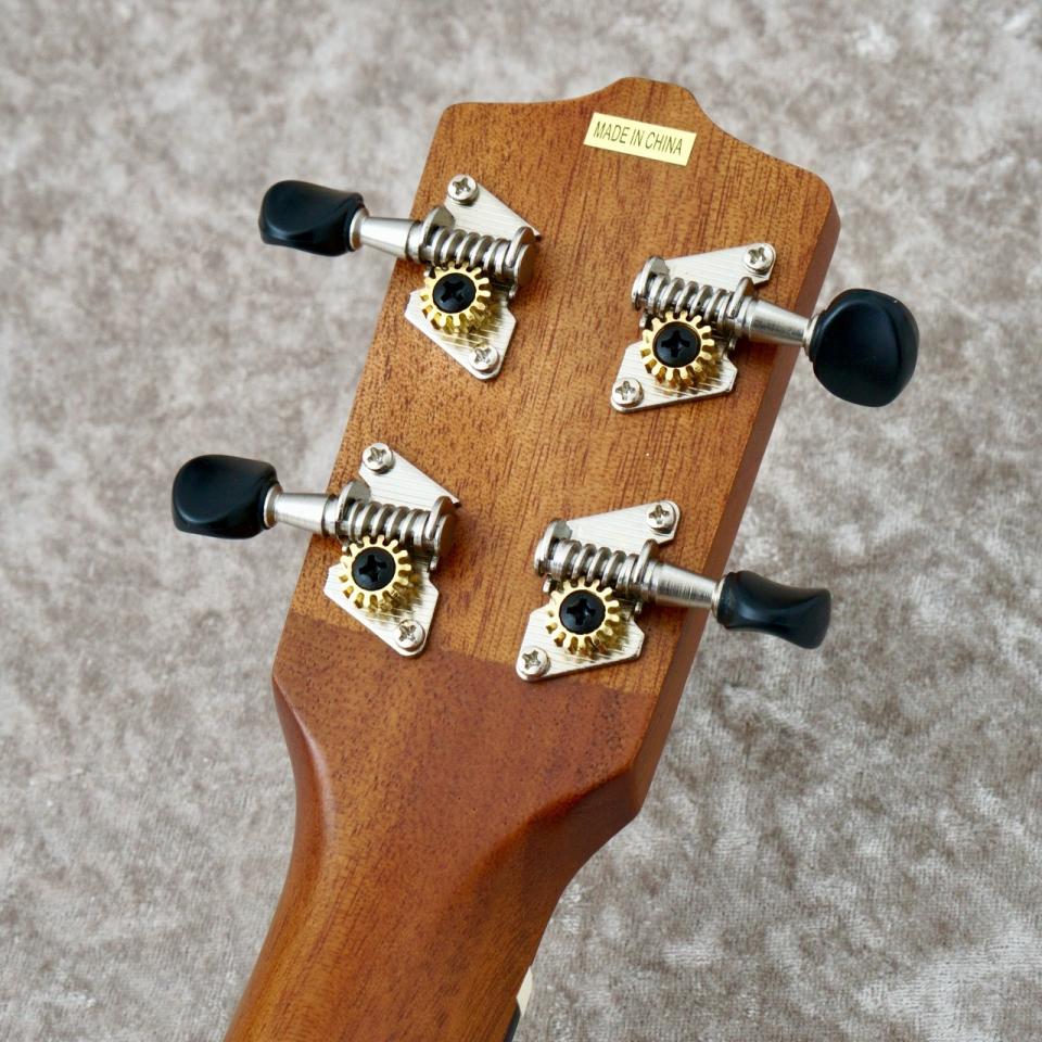 ペグはギヤペグ仕様なので、伝統的なフリクションペグの様に弦の張力による逆回転が無いため、ストレスなくチューニングを行えます。