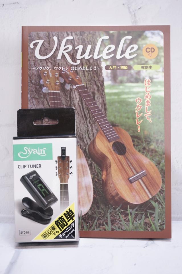 ただ今対象のモデルをご購入いただいた方に、ウクレレ教本とチューナーをプレゼント致します。