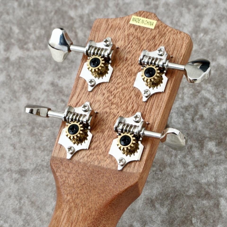 ペグはギヤペグ仕様なので、伝統的なフリクションペグの様に弦の張力による逆回転が無いため、ストレスなくチューニングを行えます。