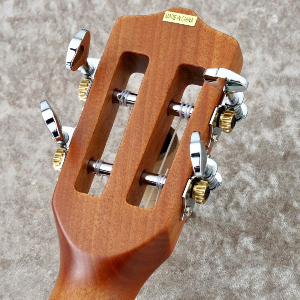 ペグはギヤペグ仕様なので、伝統的なフリクションペグの様に弦の張力による逆回転が無いため、ストレスなくチューニングを行えます。