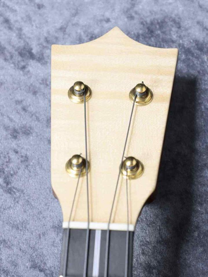 ウクレレ専門スタッフが時間をかけて検討を重ね、メイプル特有の透明感ある美しさを最大限に引き立てながら、楽器としての演奏性と音響バランスが高まるよう各パーツを選定しました。