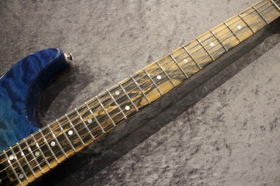 フレットもジャンボサイズのステンレスフレットをセレクト致しましたので、軽いタッチでプレイが出来る上に、滑らかなチョーキングやビブラートが可能な仕上がりとなりました。