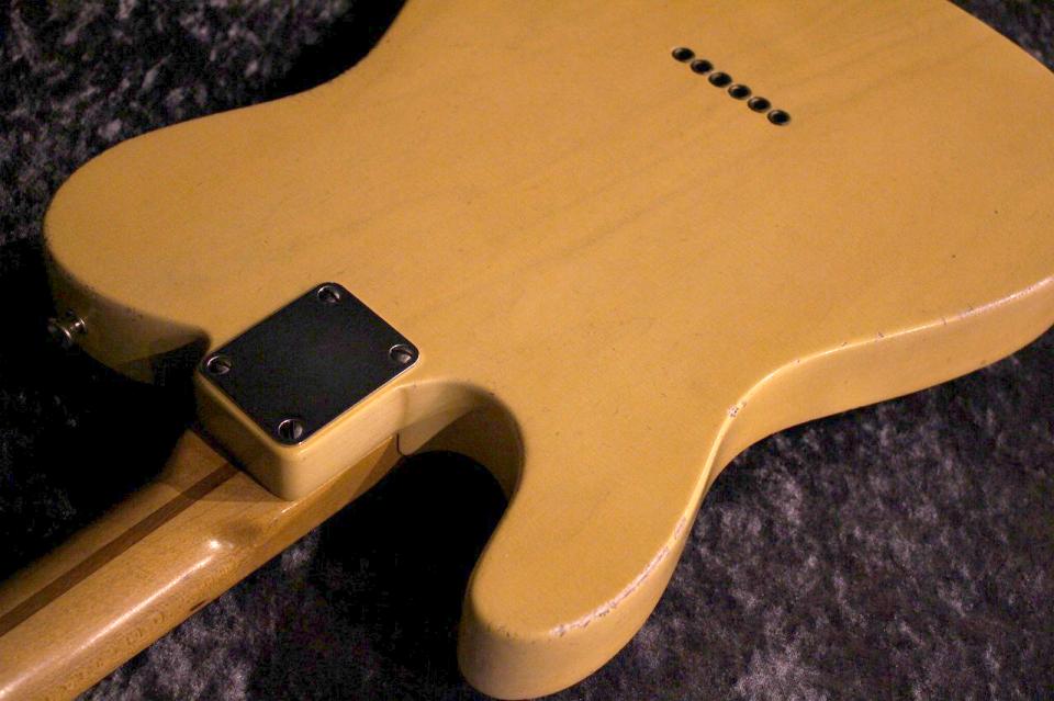 焼けたクリアの層が剥げて、元々の白い色味(オリジナルのブロンドカラー)がところどころ表出している箇所を再現する等といった箇所も、当個体があたかもビンテージであるかの様な雰囲気を醸し出させる大きな要因となっております。