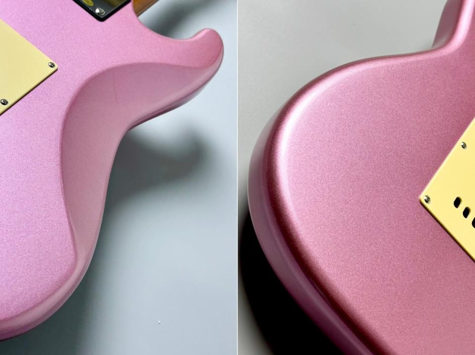 ピックガードやノブにはミントカラーのパーツを採用し、シンプルながらもオールド感のあるルックスに仕上げられています。