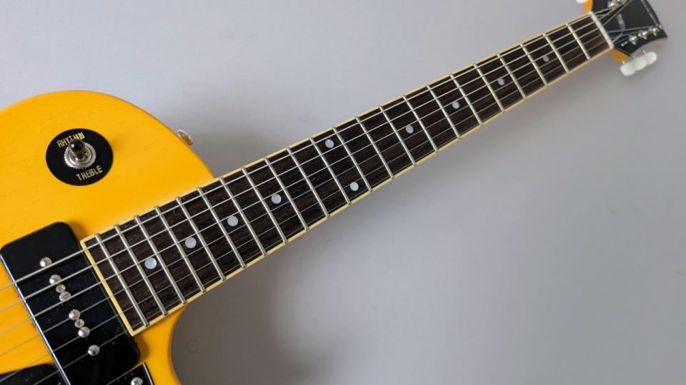 指板には、硬質でアタック感のあるローズウッドを使用。シンプルなドットインレイが、クラシックなルックスを際立たせます。