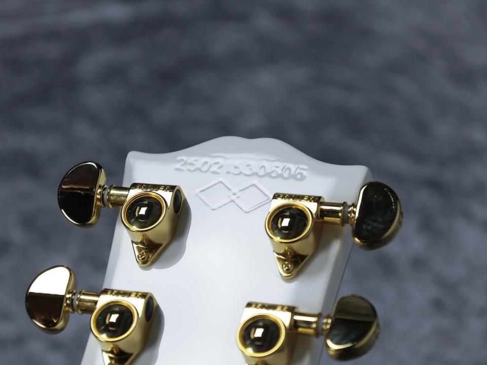 ヘッドストック裏にはInspired by Gibson Customのダブルダイヤモンド・ロゴが刻まれています。専用ブラックハードケースが付属します。
