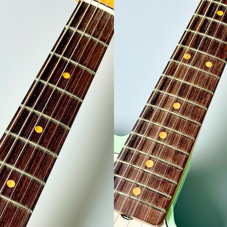 1963年には、新しいトーンウッドの組み合わせとして、サウンドにパンチがあり明瞭度の高いアルダー材に、ウォームなトーンを提供するラウンドローズ指板を採用したモデルが登場し、Telecaster?の特徴的なトゥワングサウンドがさらに強調されるようになりました。Pure Vintage '63 Telecaster?ピックアップ、3スレッデッドスティールサドルブリッジ、7.25インチラジアス指板を配した快適な1963 "C"シェイプメイプルネックを装備したAmerican Vintage II 1963 Telecasterは、1963年当時に生産されてたオリジナルモデルの真髄といえるトーンとフィーリングを再現しています。本モデルは、12フレットのポジションインレイの間隔が若干狭いクレイドットといった細部にまでこだわり抜いて再現されています。マホガニーボディにCrimson Red Transparentフィニッシュ、アルダーボディにSurf Greenフィニッシュといった2色のモデルをラインナップしています。