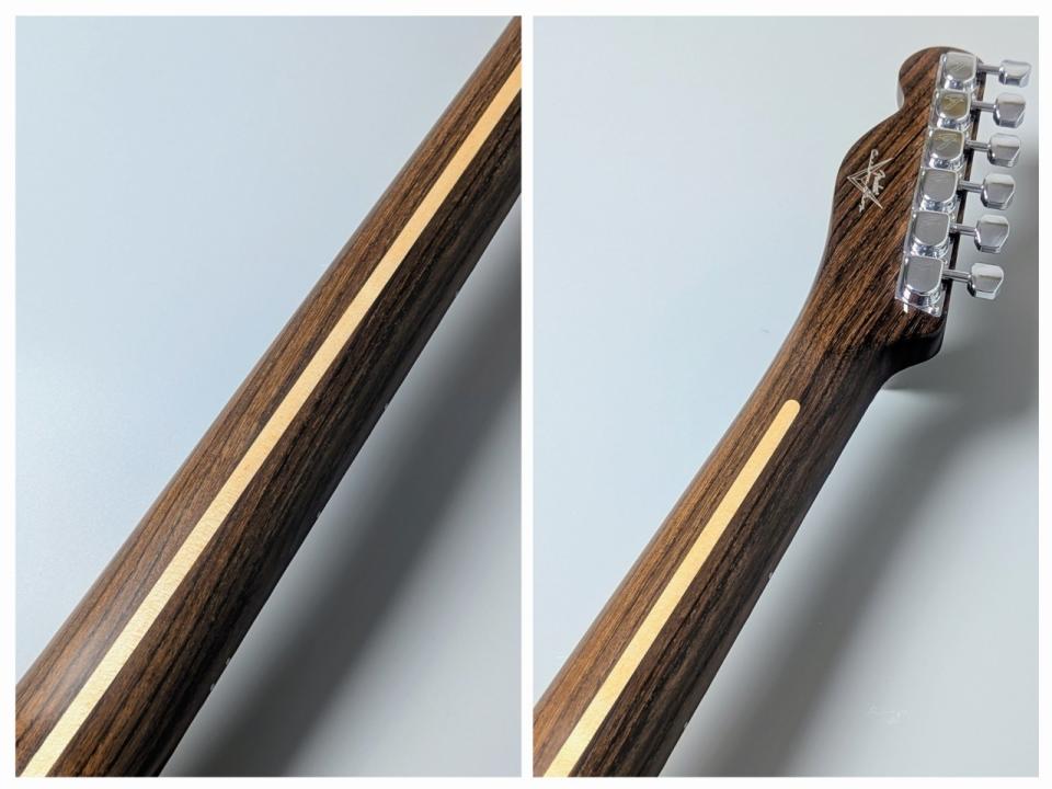 ネック裏はサテンフィニッシュ(ジョイント部とヘッド裏のみトップ、指板と同じくグロスフィニッシュ)で仕上げられており、演奏性も良好です。