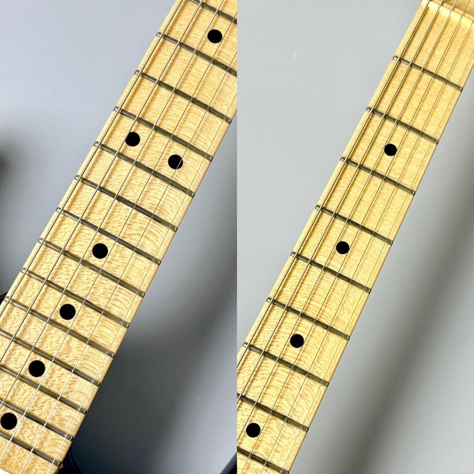 こちらは2014年に製造された個体で、その後、使い込まれたようで、相当のフレットのヘリが見られます。