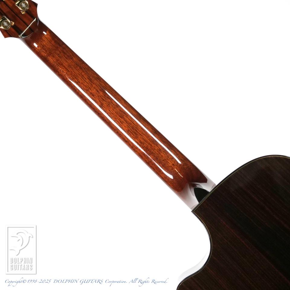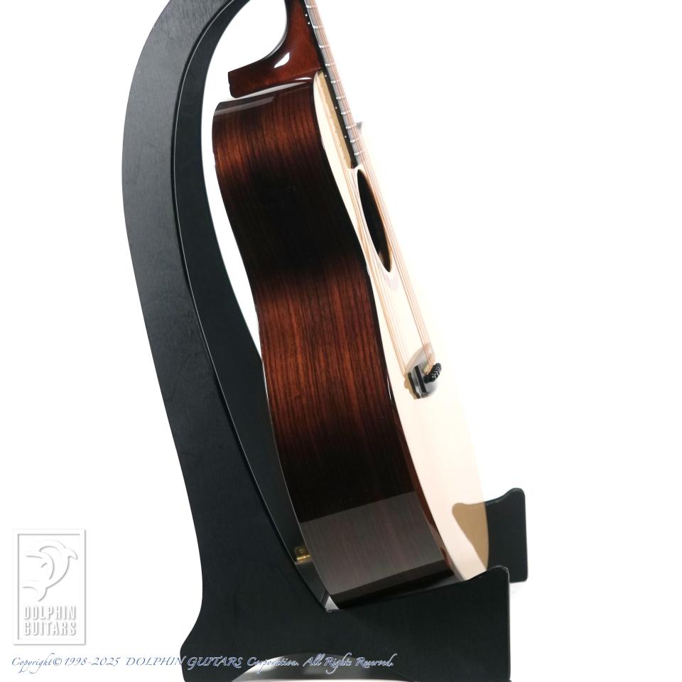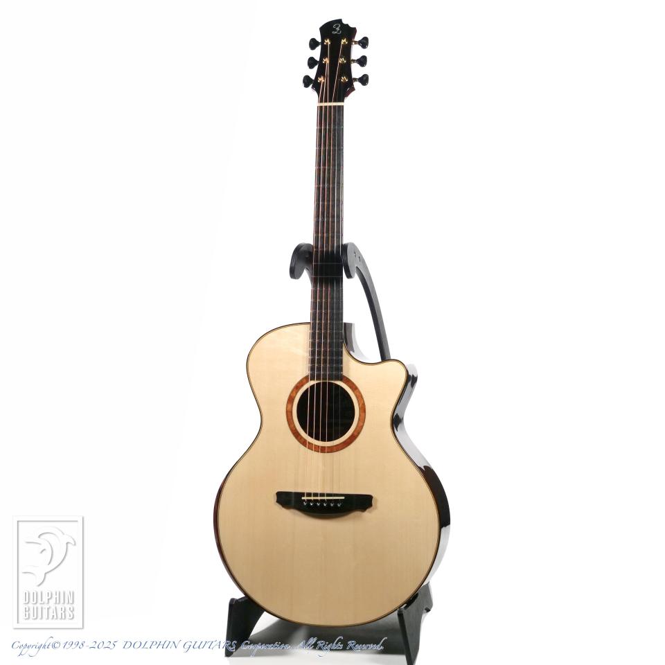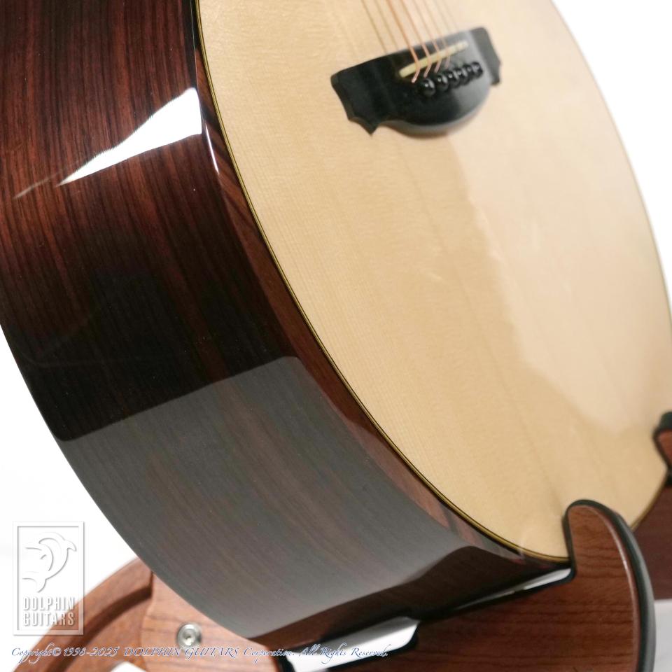 15周年という節目に特別なギターが欲しいという想いをカタチにしていただきました。使用材はインディアン・ローズウッド+ルッツ・スプルースとオーンドックスながらも、バック&サイドはできる限り薄いブラウン系でとこだわった選定をさせていただきました。ボディー・シェイプは前シグネチャーと同様ながら、ヘッド、ブリッジ形状は僕自身がデザインしたオリジナル・シェイプに変更してもらい、より特別なギターになりました。もちろんロゼッタやバインディングなど細かな装飾も全て僕が決めた特別仕様のシグネチャーモデルです。