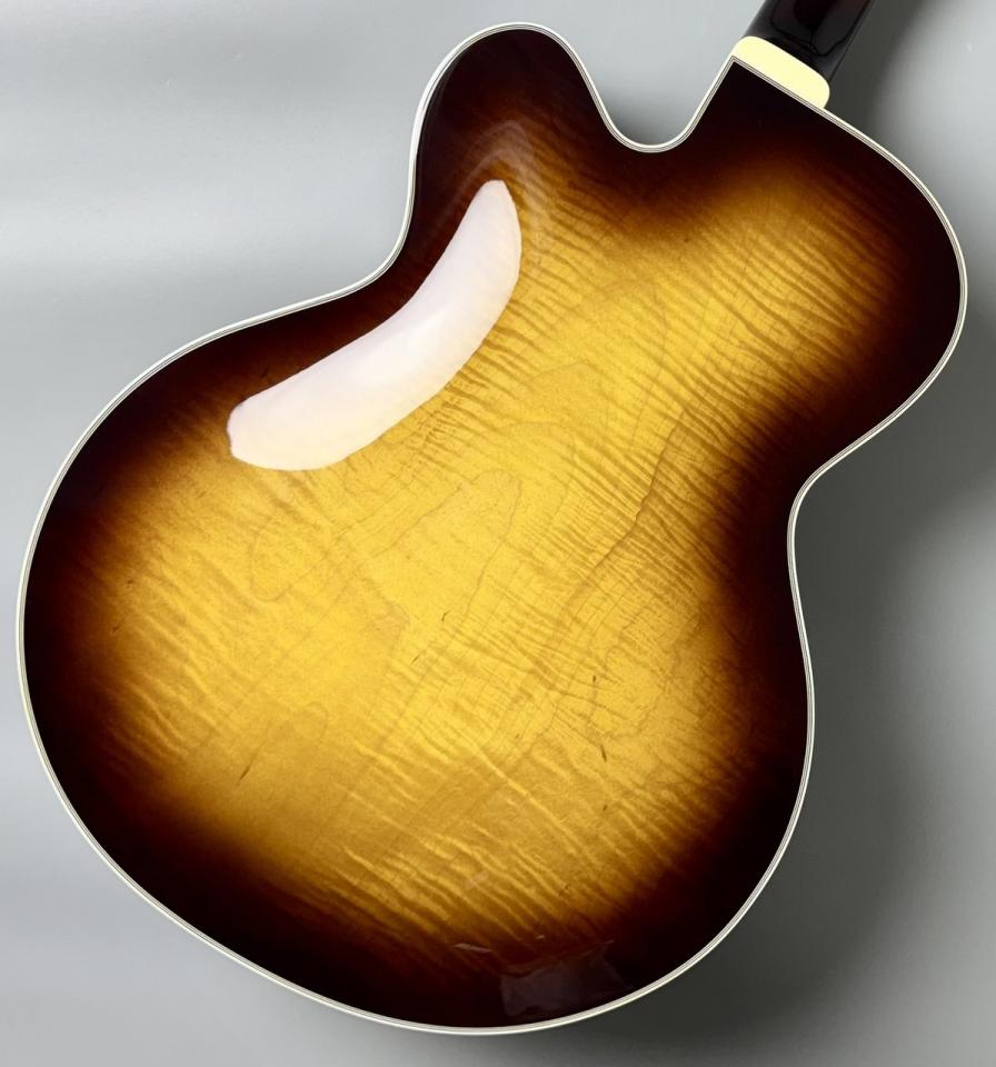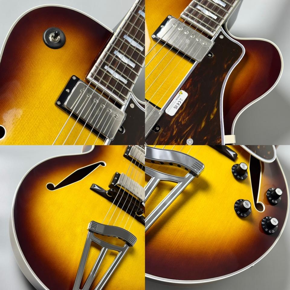 スプルーストップ、カーリーメイプルサイド&バックのボディと、5ピースのメイプル/ウォルナットネックが、フルアコならではのエアリーで豊かな鳴りを実現。コードワークでも単音でも、ふくよかな響きを堪能できます。