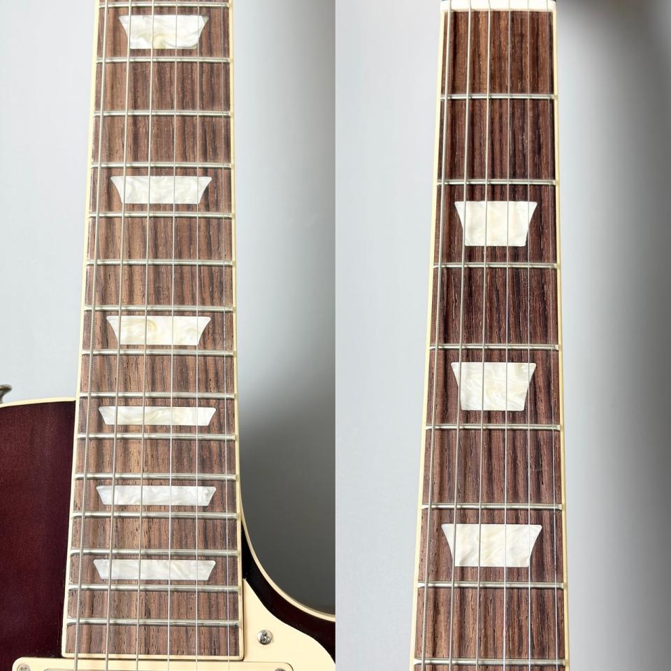 ネック形状に関しては演奏性のみならずサウンドにも影響を与え、しっかりとグリップ感のあるネック形状はパワフルでタイトな低音の出力にも貢献しており、まさに”Gibson Les Paul”というイメージ通りのサウンドに仕上がっています。