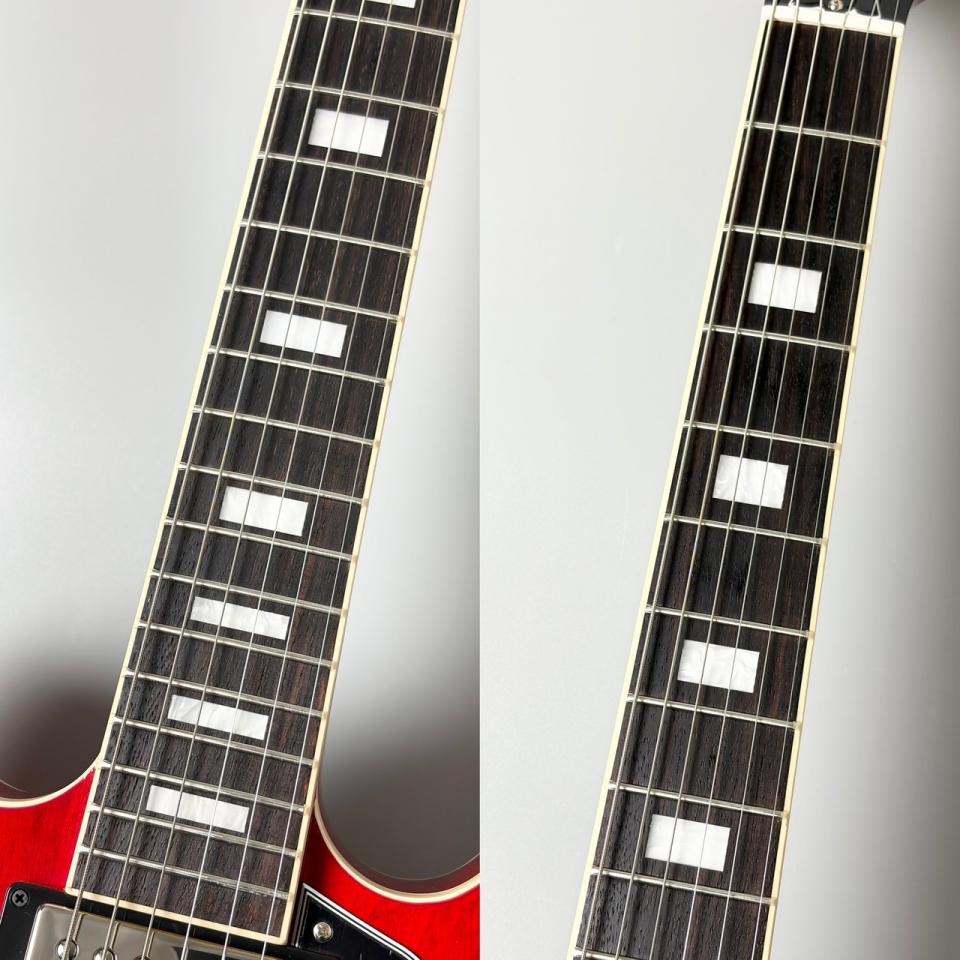ドットインレイに指板はローズウッド、ショートガードの'61仕様がベースになったモデルでございます。