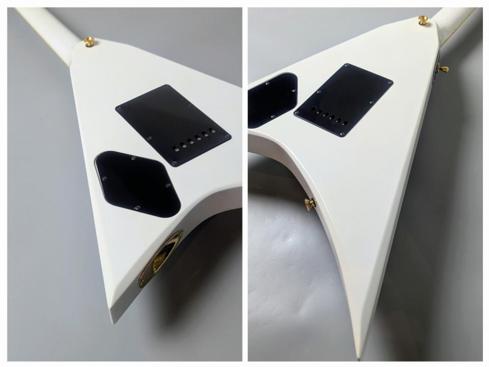 本機最大の特徴は、製作から年月が経過しているにもかかわらず、変形ギターの宿命とも言える「ボディ先端部の欠け」が一切見られない点です。大切に保管されてきたことが一目でわかる、プレイヤー・コレクター双方におすすめできる個体です。