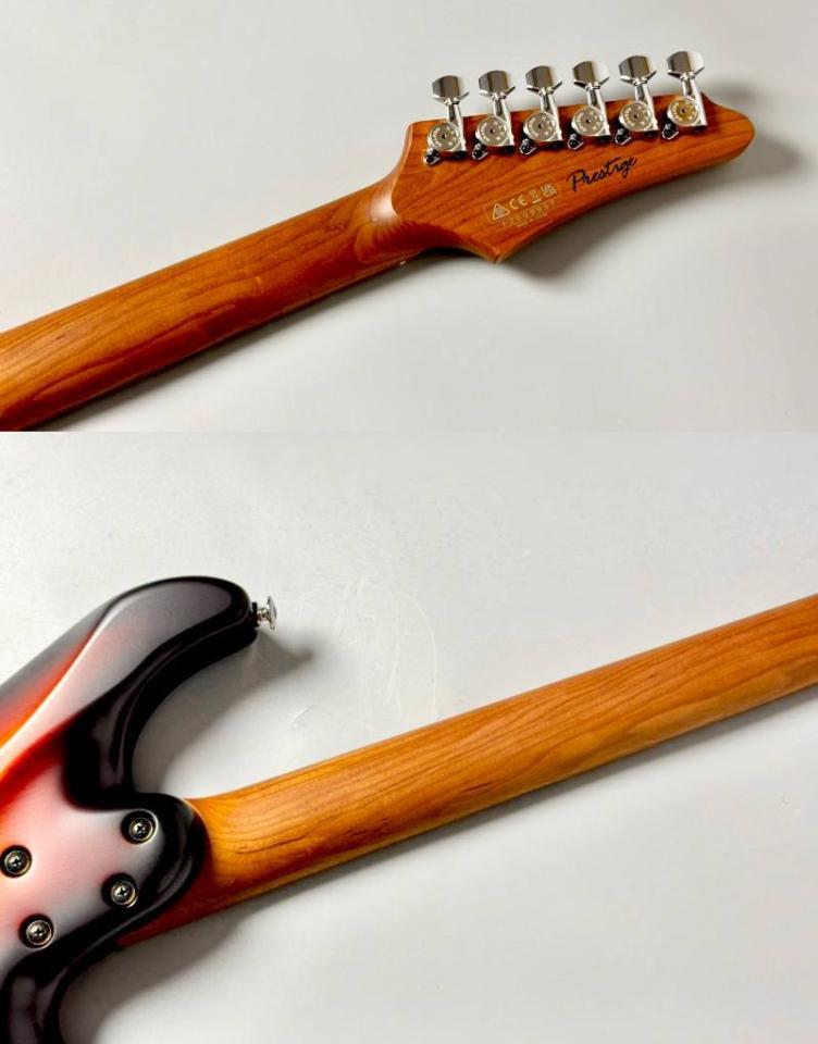 ブリッジには、Gotoh T1802トレモロブリッジを採用。高いチューニング安定性と、スムーズなアーミングプレイを可能にします。クロームのハードウェアも、このギターの洗練されたルックスを一層引き立てています。