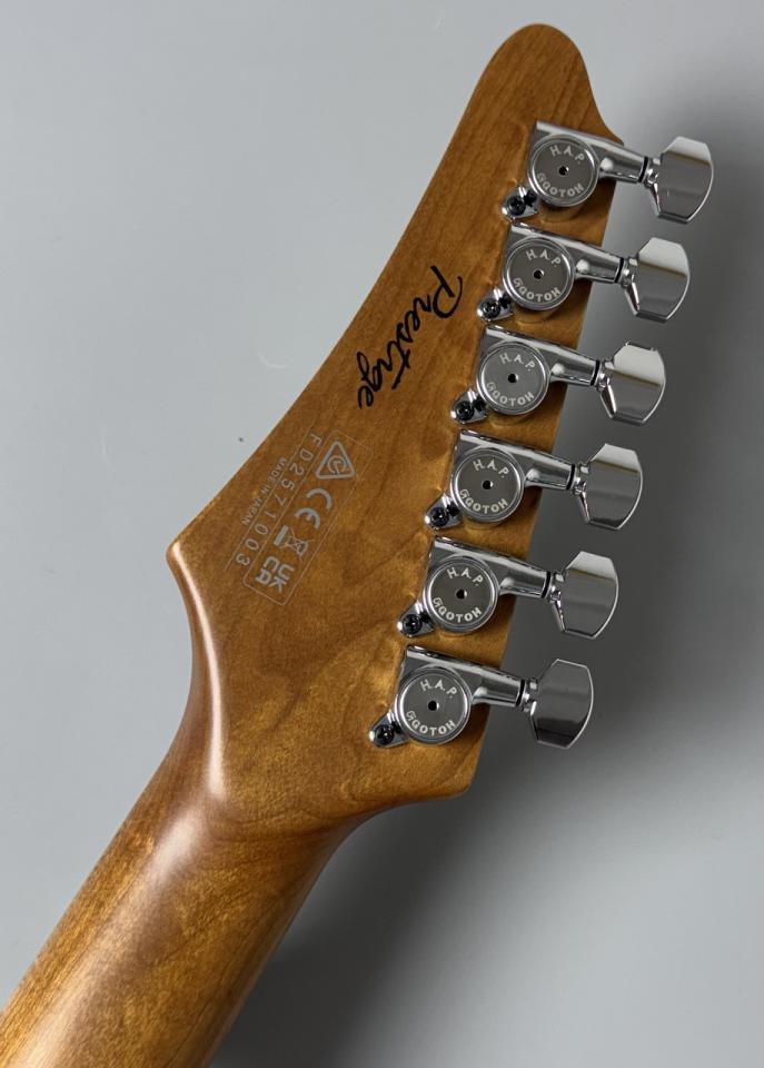 ブリッジには、Gotoh T1802トレモロブリッジを採用。高いチューニング安定性と、スムーズなアーミングプレイを可能にします。クロームのハードウェアも、このギターの洗練されたルックスを一層引き立てています。
