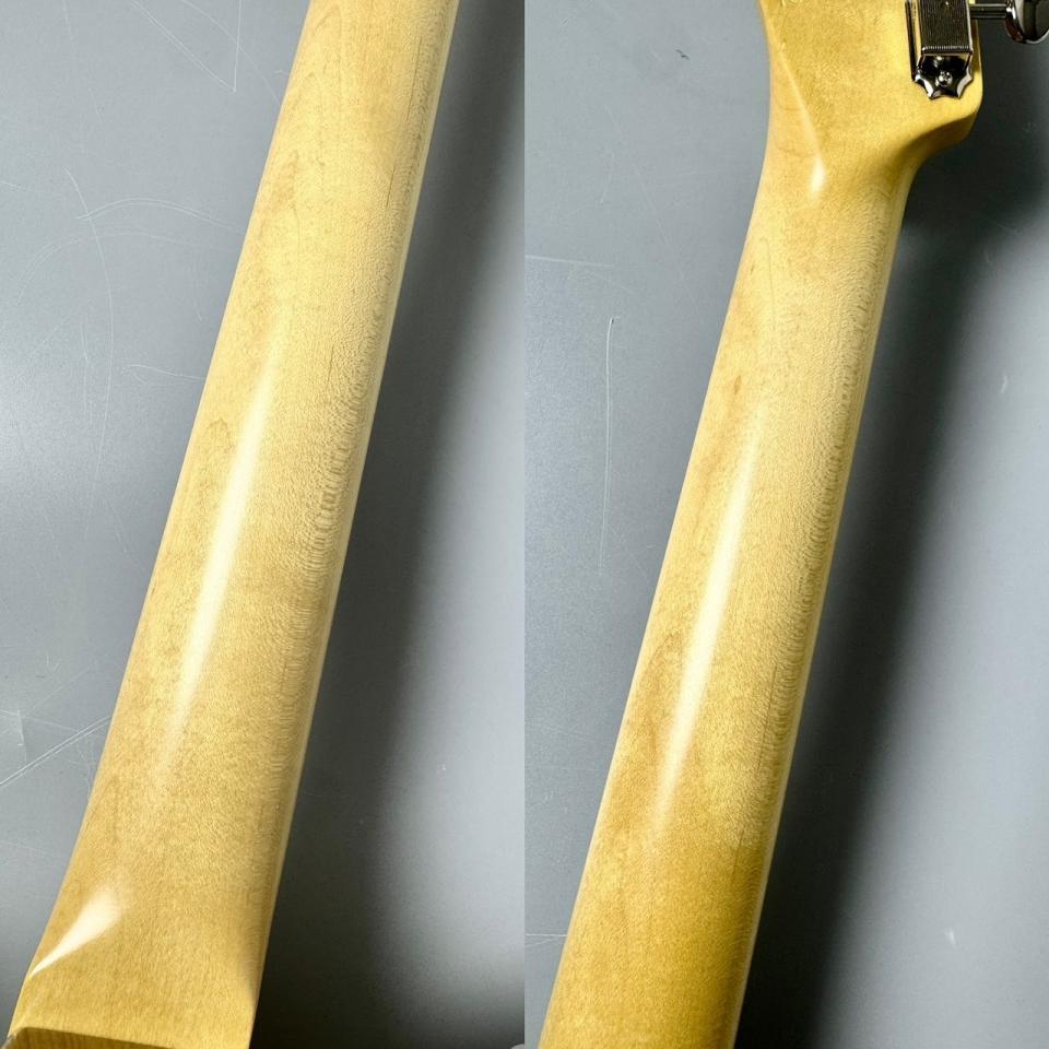 落とし込み・深いホーン部分によりハイポジションの演奏性が高まるほか、手が大きなプレイヤーの方でもストレス無くハイフレットに向かって駆け上がるプレイが可能になります。