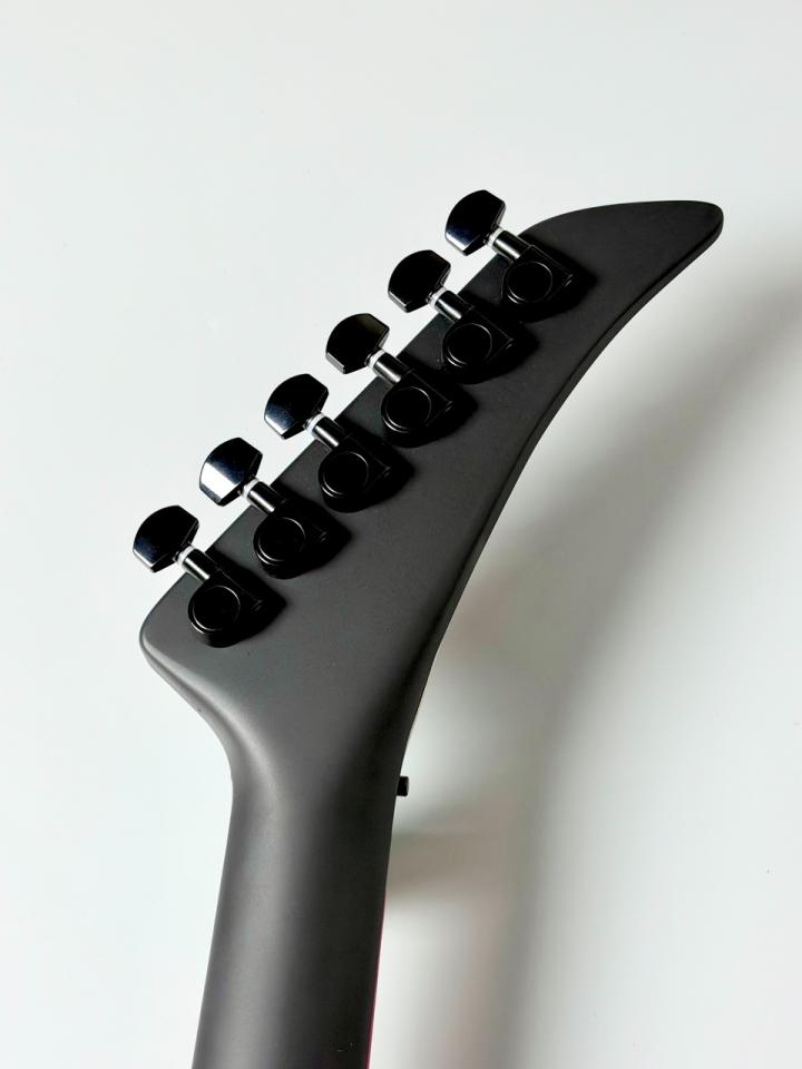 80年代後半の登場以来、その独自のデザインと高いプレイアビリティでギタリストを魅了し続けた名機が、当時の魂はそのままに、モダンな仕様を加えて待望の再リリースを果たしました。このマットブラック・フィニッシュは、ステージでの存在感を際立たせる、クールでアグレッシブなルックスが魅力です。
