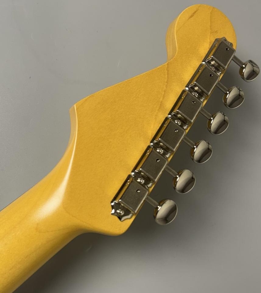 ブリッジにはVanzandtオリジナルのスティール製シンクロナイズドトレモロを採用。スチールブロックによる倍音の豊かさと明瞭なアタックが、Fullertoneピックアップのトーンキャラクターを最大限に引き出します。チューナーはヴィンテージスタイル、ピックガードはミントグリーン3プライ仕様で、ルックス面でも60年代ストラトの雰囲気を忠実に再現。細部までヴィンテージフィールにこだわった完成度の高い仕上がりです。