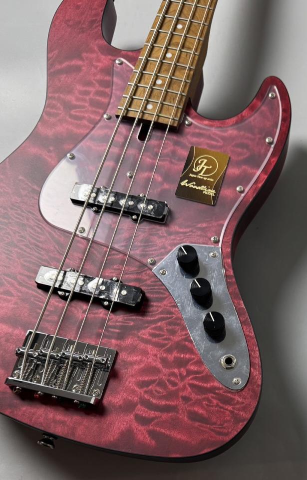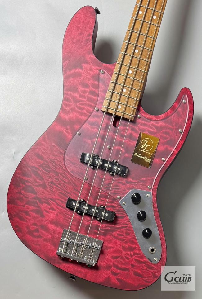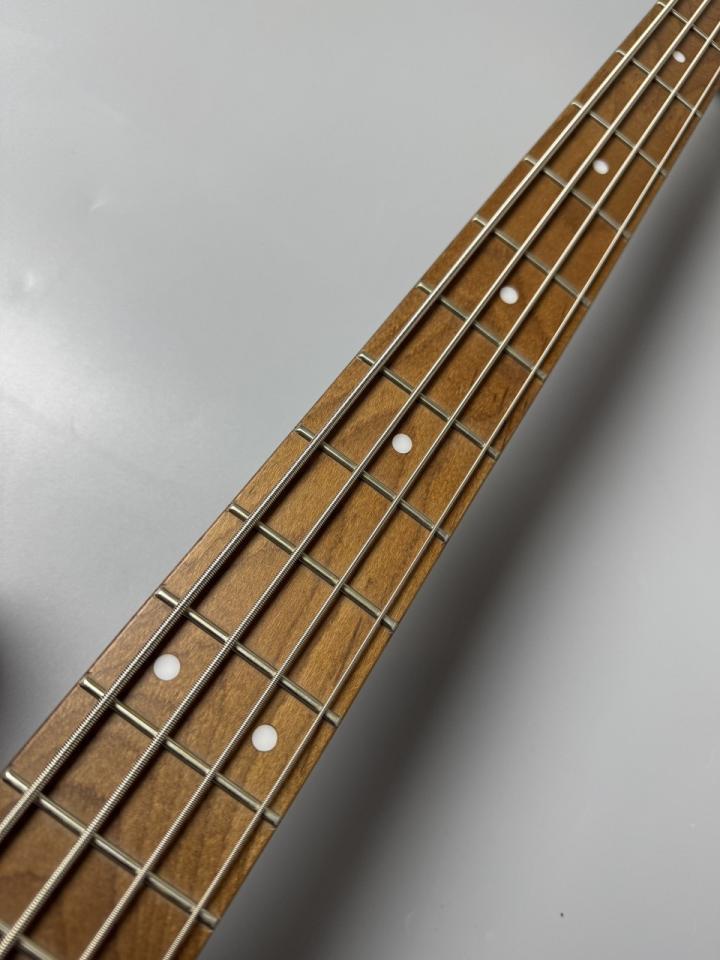 WLモデルは、Handmade Seriesで培ったWOODLINEの持つディンキーシェイプのボディを継承し、一般的なJBタイプのエレキベースより少し小さくなっているので、どんな方でも弾きやすくなってます。ボディトップには美しい杢目が目を引くキルトメイプル材を採用し、ボディバックには中低音が豊かなナトー材、ネック&指板には、高温で加熱処理をして、木材の中の水分や油分を一定数量に揮発させることにより剛性を高め、高級機種で採用される事の多いローステッドメイプル材が使用されております。