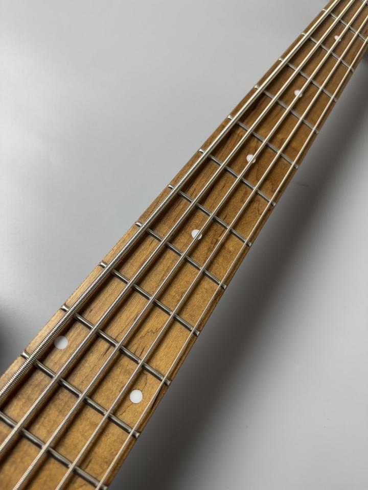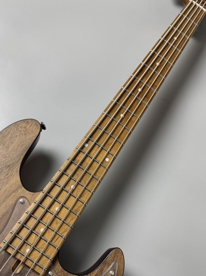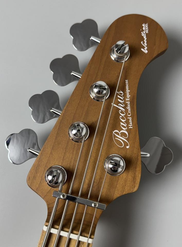 WLモデルは、Handmade Seriesで培ったWOODLINEの持つディンキーシェイプのボディを継承し、一般的なJBタイプのエレキベースより少し小さくなっているので、どんな方でも弾きやすくなってます。ボディトップには美しい杢目が目を引くウォルナット材を採用し、ボディバックには中低音が豊かなナトー材、ネック&指板には、高温で加熱処理をして、木材の中の水分や油分を一定数量に揮発させることにより剛性を高め、高級機種で採用される事の多いローステッドメイプル材が使用されております。