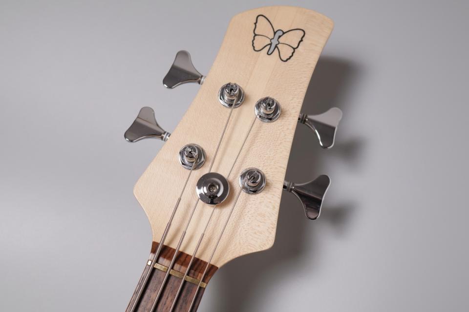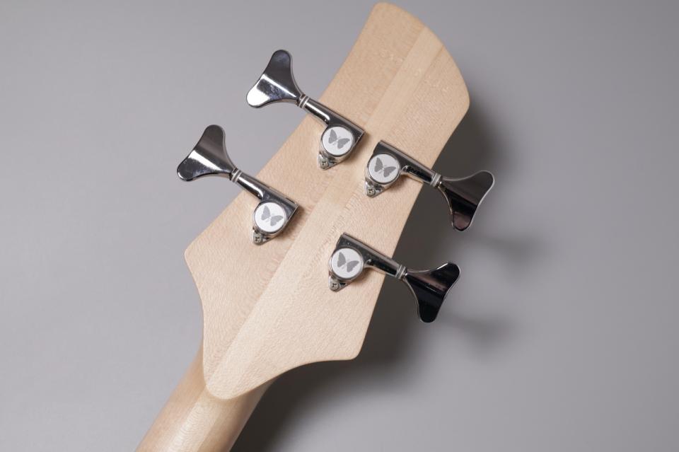 ネックは、剛性の高いメイプルを使用。指板には、目の詰まったローズウッドが使用されており、豊かなサステインとスムーズなフィンガリングを両立しています。